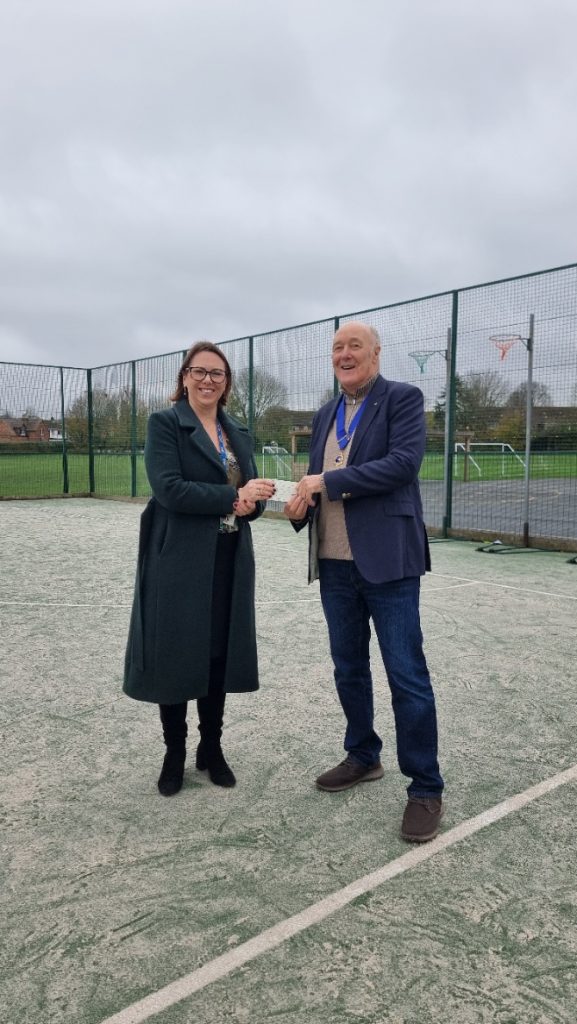 Rotary Club of Guildford Wey President, Andy Bowen-Ashwin, was pleased to be able to present the Club’s cheque of £500 to the Executive Head Teacher of the Merrow Federation, Mrs Louisa Dormer