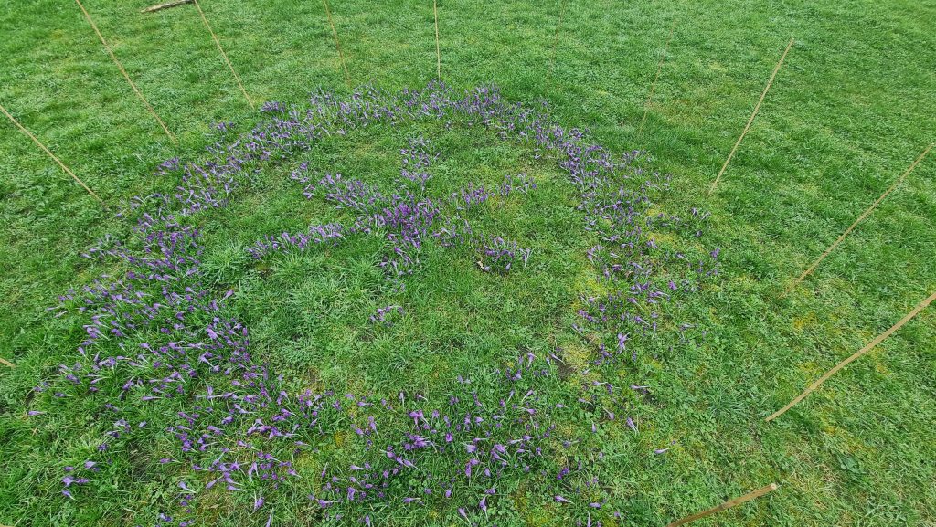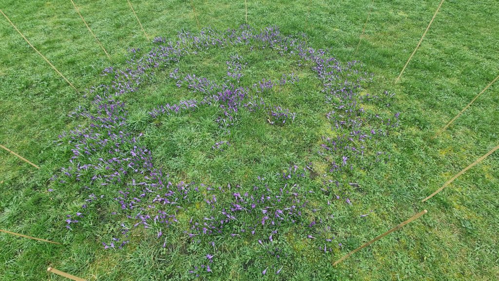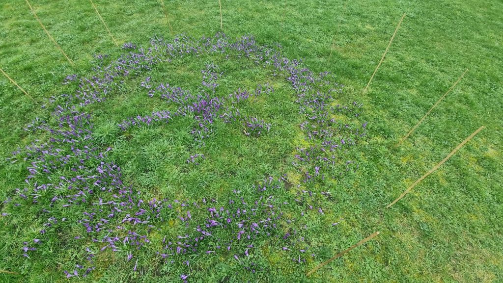Remembering our planting of 4,000 crocuses last October This Spring we can see our first season’s results. Wind and rain unfortunately battered them somewhat but they are there to see and have been well received by passers by.